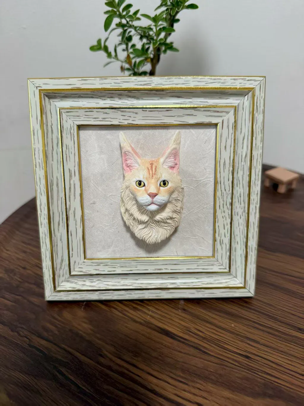 handmade pet plaster photo frame with sculpture detail